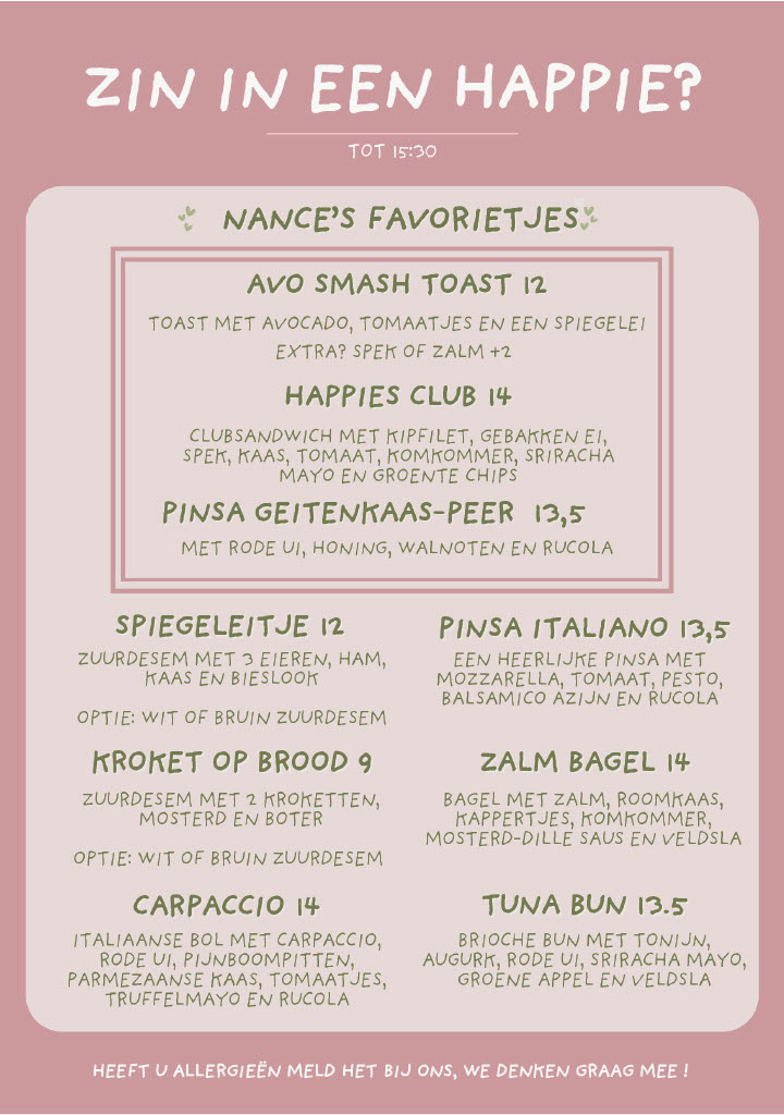 Of je nou binnenwandelt voor een flatwhite, een lekker broodje uit de oven of gewoon even wil ontsnappen aan de drukte bij ons vind je je momentje. Alles op de kaart is met liefde gemaakt, een beetje eigenwijs en vooral: precies waar je zin in had. Vragen over allergenen, zin in iets anders, of een speciaal verzoek? Laat het ons weten, we denken graag met je mee.